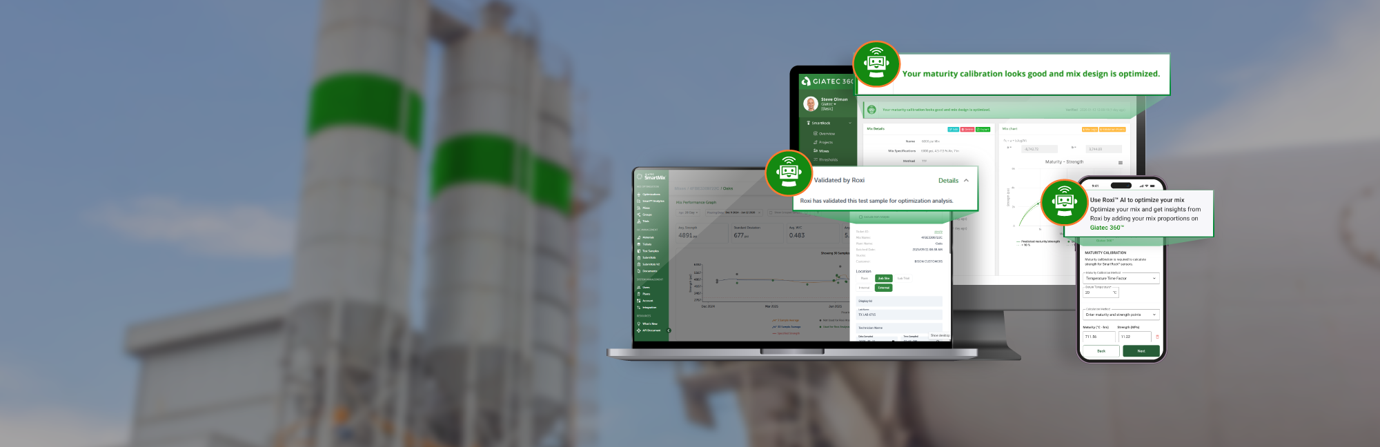 By aligning every mix to real-world performance, Roxi decreases unnecessary cement per cubic yard, helping producers cut material costs while reducing embodied carbon – all without compromising strength or quality.